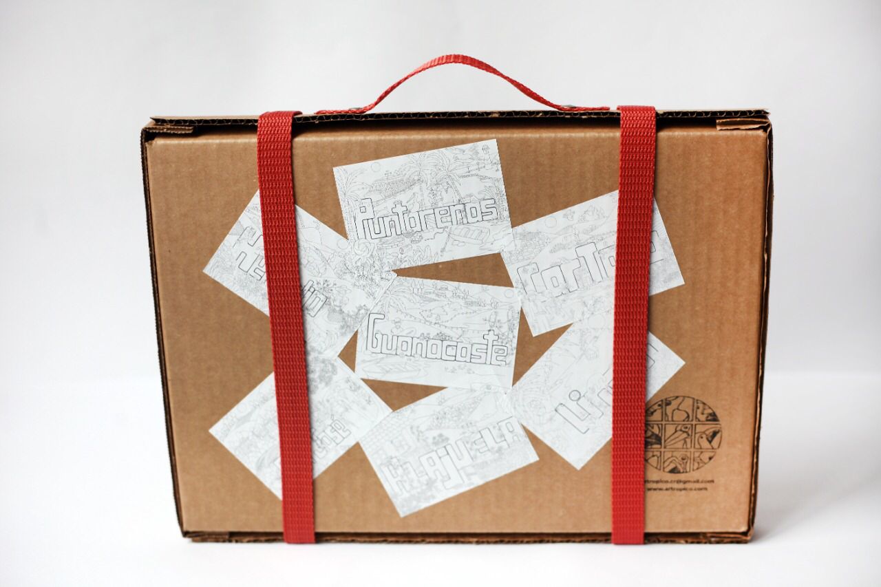 - En el interior se encuentran siete ilustraciones de las provincias de Costa Rica, impresas en opalina que contienen detalles alusivos a cada una de ellas, además incluimos doce lápices de color y un tajador para hacer completa la experiencia.