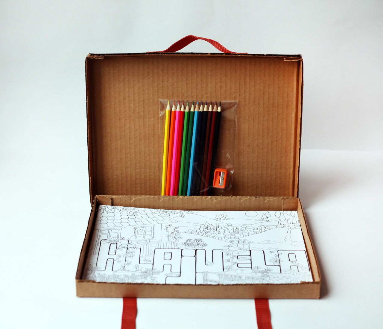 - La base de la caja está diseñada para apoyar la ilustración al colorear y así poder disfrutarlo en cualquier momento.
