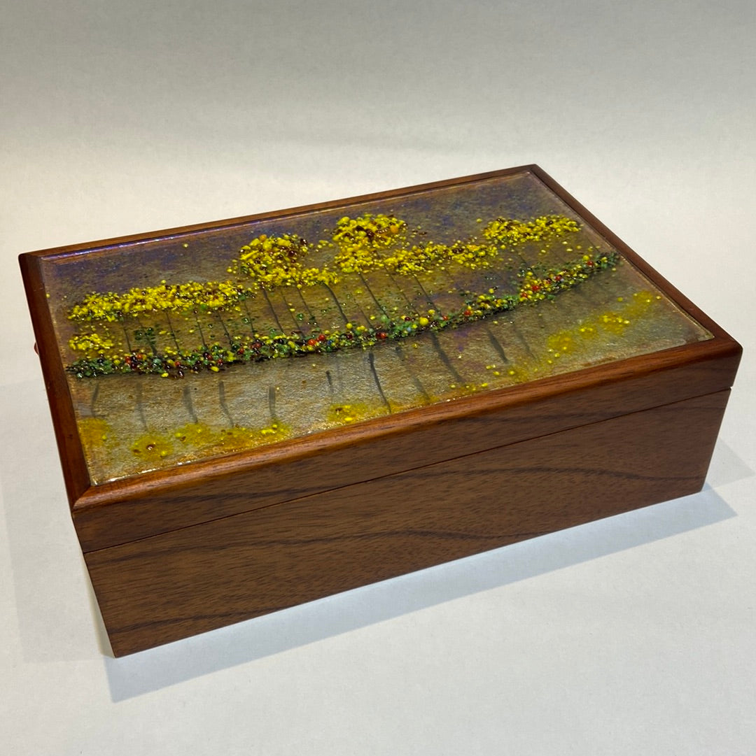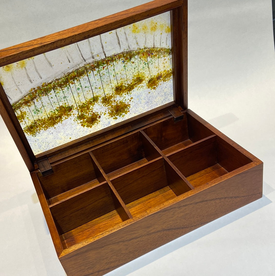 Costa Rican Wooden Tea box with handmade Fused Glass cover - Trees design